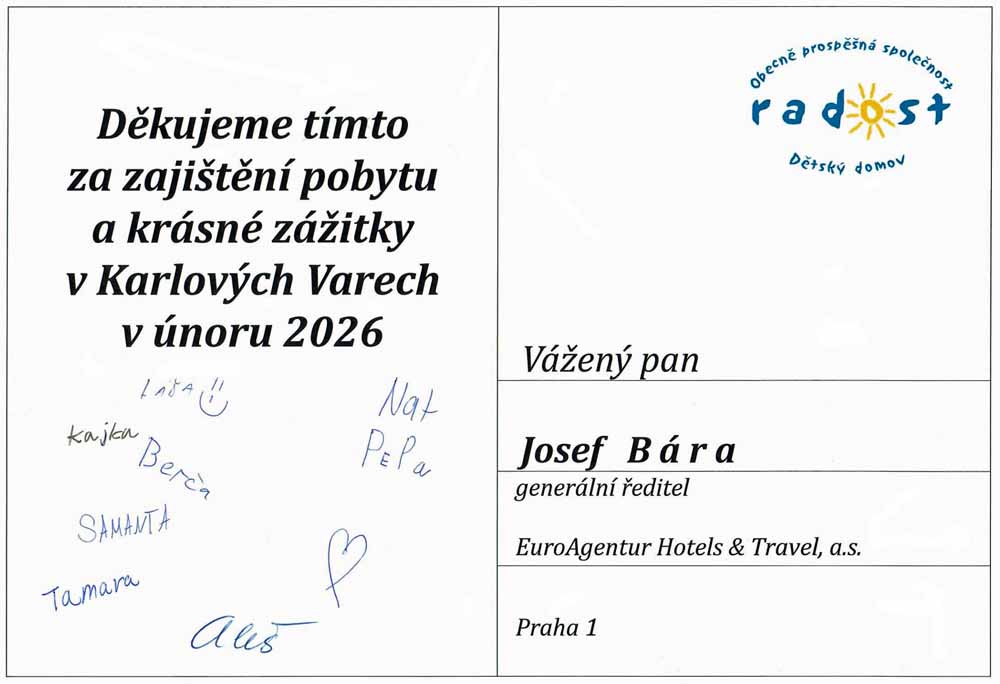 Letošní jarní prázdniny strávily děti v našem karlovarském EA Hotelu Mozart. Výlet do lázeňského města si maximálně užily a v hotelu se jim moc líbilo. Máme velkou radost, že jim naše pohostinnost připravila dny plné úsměvů a nových objevů.